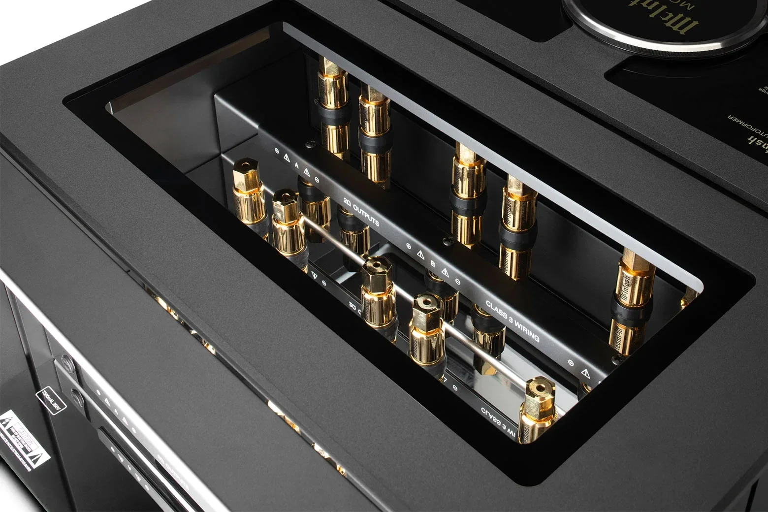 - Uitgangen: Solid Cinch™ binding posts (aparte platforms voor 2/4/8 ohm, elk met 3 sets voor bi-/tri-wiring)